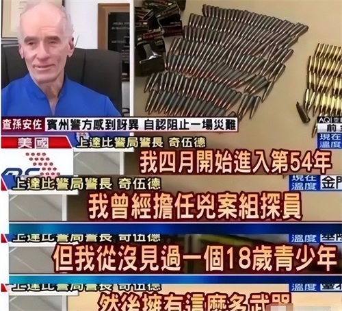 不过没有等他袭击校园,他先等来的是警察的搜索,手枪、1600发子弹和相关配件。