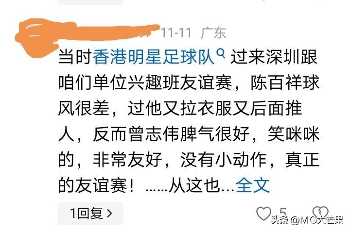 还有广东网友说“陈百祥球风不好不如曾志伟,早晚的事”,