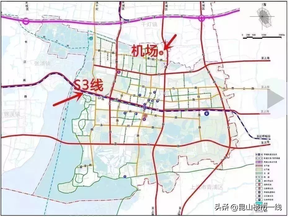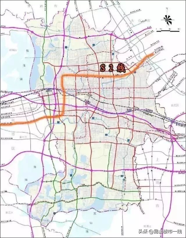 在《昆山市城市总体规划(2016-2030)》纲要论证稿(简本)中,一张综合交通布局图显示了S2的走向。