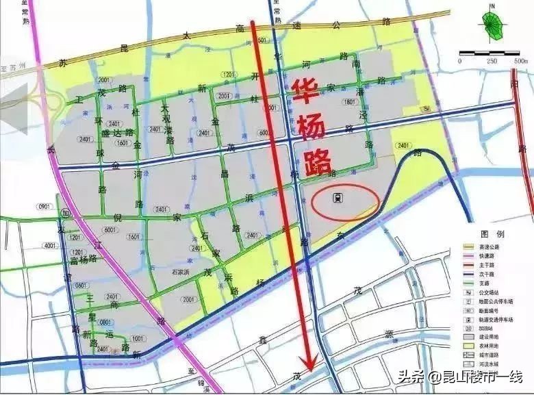 根据《昆山市B15规划编制单元控制性详细规划》草案公示,沿华杨路将会预控城市轨道K2线,东侧规划轨道交通停车场。