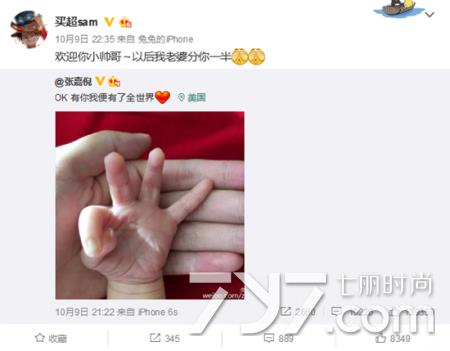 9日晚,张嘉倪通过微博晒大手小手照,并写道:“OK有你我便有了全世界。”照片中,一只可爱的粉嫩小手作出“OK”的手势,放在大手的手心,十分的温馨可爱,更有网友扒出这条微博是在美国发的,所以张嘉倪应该是在美国生产的。随后,张嘉倪男友买超转发此微博,并宣布生的是儿子,他幸福地写道:“欢迎你小帅哥,以后我老婆分你一半。”其中“老婆”称呼疑透露两人已结婚,网友:两个人一直在秀恩爱,但是两个人结婚了还是没有结婚呢?