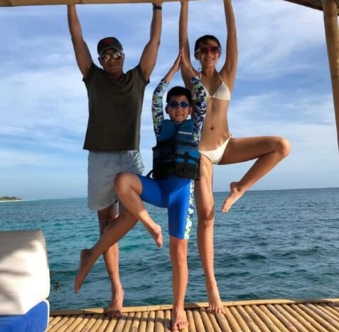 在卢芳晒出的一张照片中,九儿穿着比基尼和爸爸胡军、弟弟康康一起出镜,她的大长腿超吸睛,16岁已经跟爸爸一样高了,零赘肉的高挑身材简直可以上维密了。