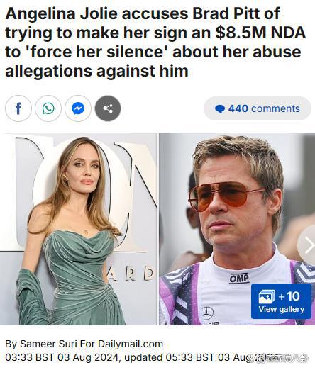 据外媒报道,安吉丽娜 · 朱莉最近又在法院指控皮特,声称只要签署一份保密协议,就可以从皮特那里领取 850 万美元(约合人民币 6000 万),该协议要求朱莉撤掉控诉皮特家暴的证据,希望女方用沉默掩盖事实。