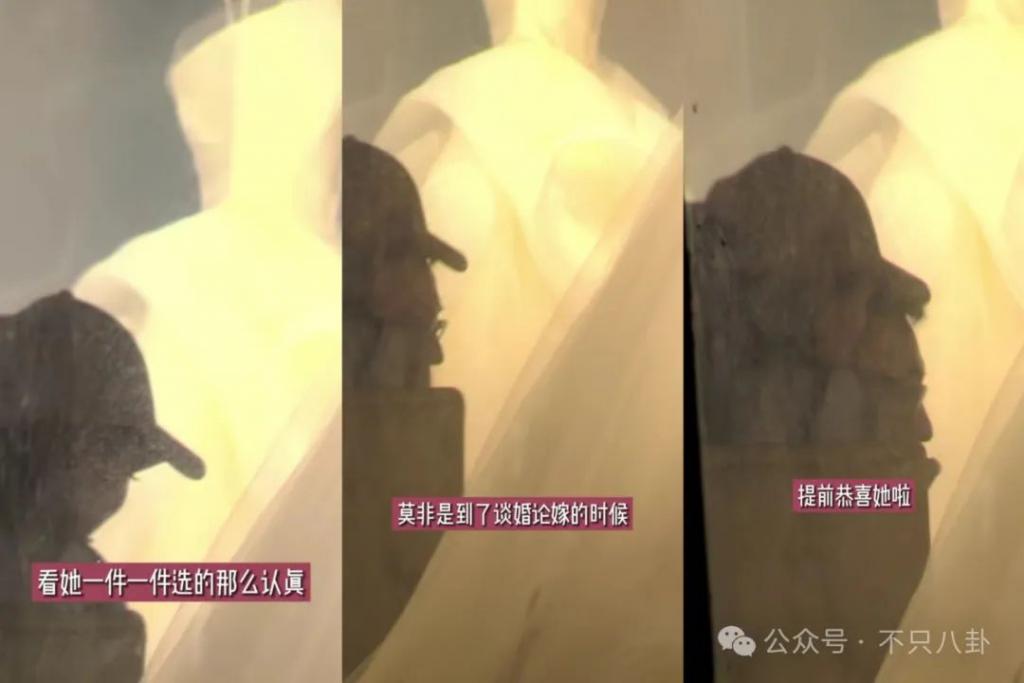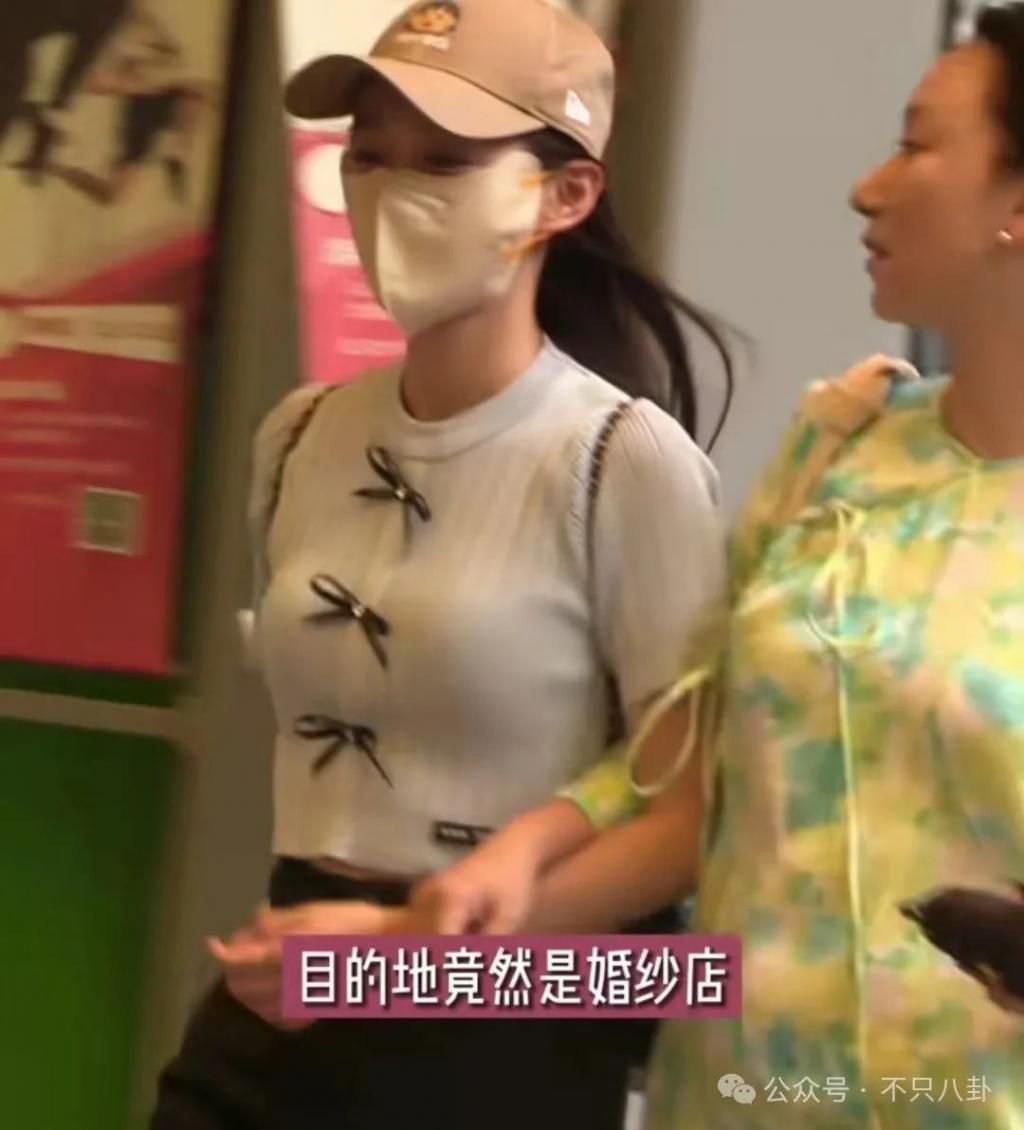 酒店密会之后没多久,何泓姗被拍到现身婚纱店挑选婚纱。