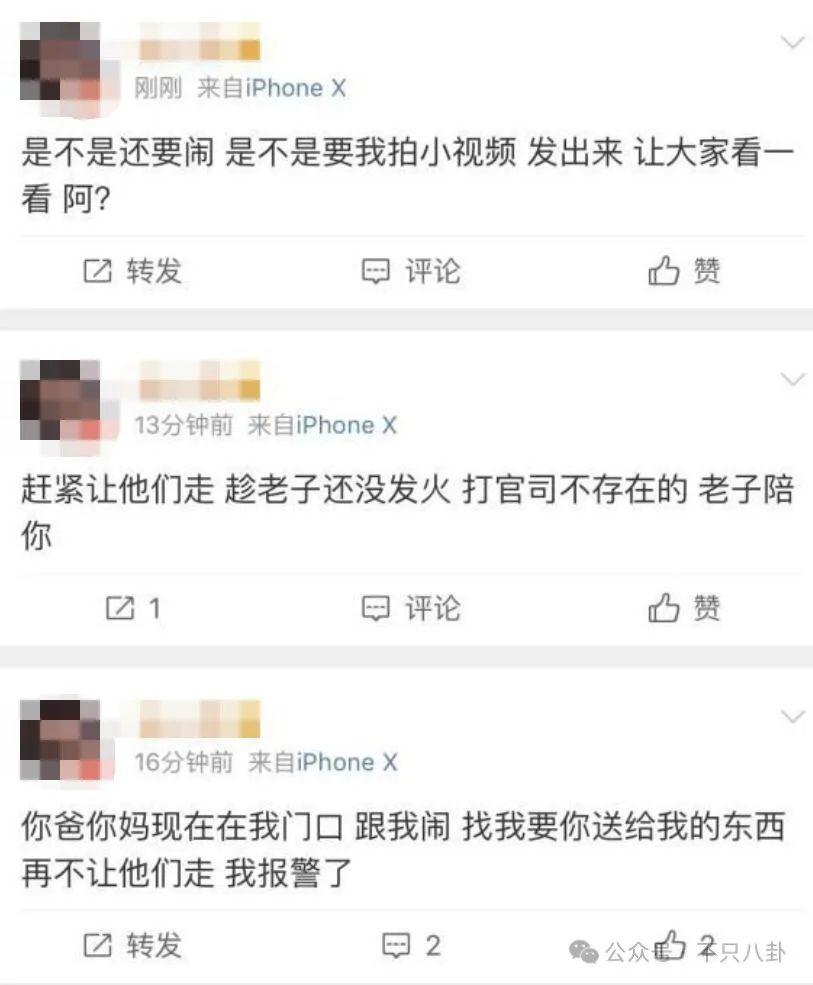 还有爆料称,分手之后胖胖让父母去骚扰女生,索要两人交往期间赠送的礼物。