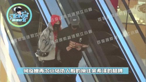 不管走到哪,何泓姗都小鸟依人般挽着吴希泽的胳膊,小情侣像连体人似的,一会儿都不想分开。