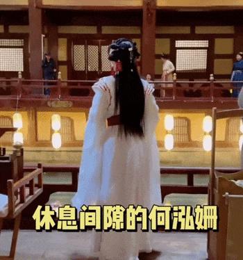 拍摄间隙,何泓姗都是靠玩游戏来打发时间。