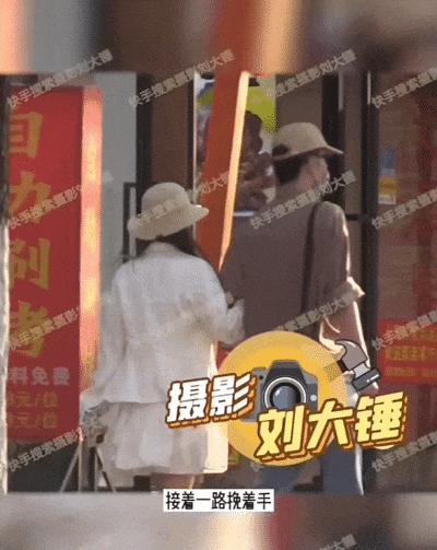 第二天,两人穿搭从运动风又转变成了文艺风,不变的还是手牵手。