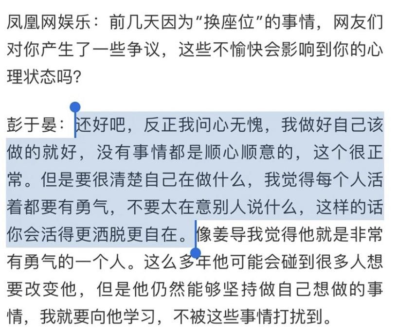 不知道是不是姜文的力挺给的勇气,彭于晏也再次回应换座风波,说自己问心无愧。