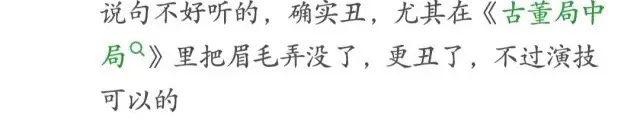 为了把《古董局中局》里的郑国渠演好,阿如那不惜剃掉自己的眉毛,在没有最丑只有更丑的路上挺进到底。终于,把观众给吓傻了。