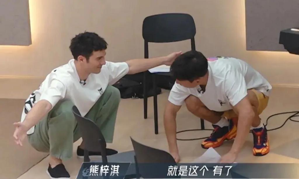 给队友指导的时候也是一整个霸气侧漏,看见熊梓淇唱歌时喜欢加手部动作,他直戳要害,让人家以后别抬手了。