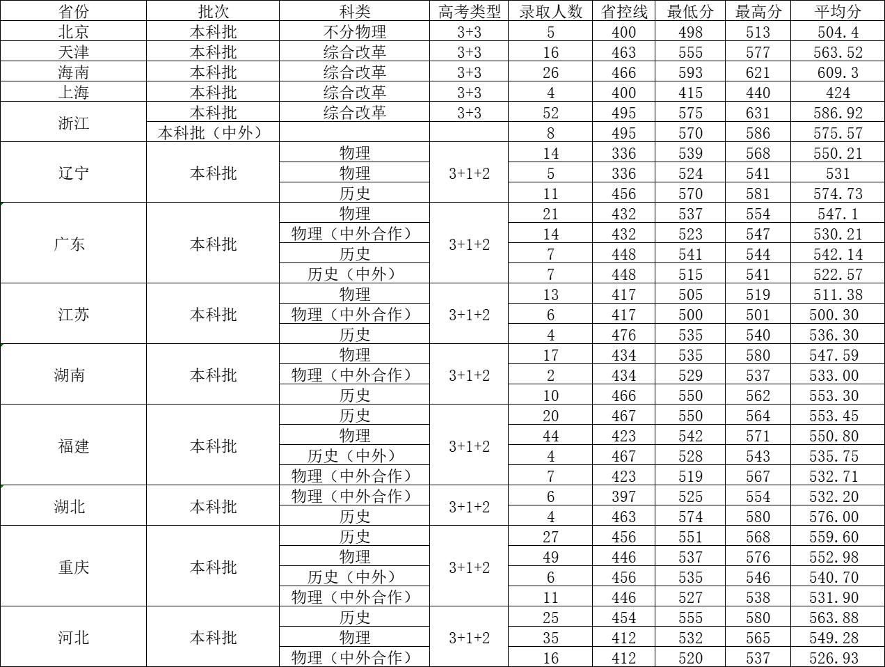 在四川录取分数创新高,一本调档线(文科)556分,超出一本线15分,调档分排省内第10位,理科一本调档线542分,超出一本线21分,调档分排省内第13位。