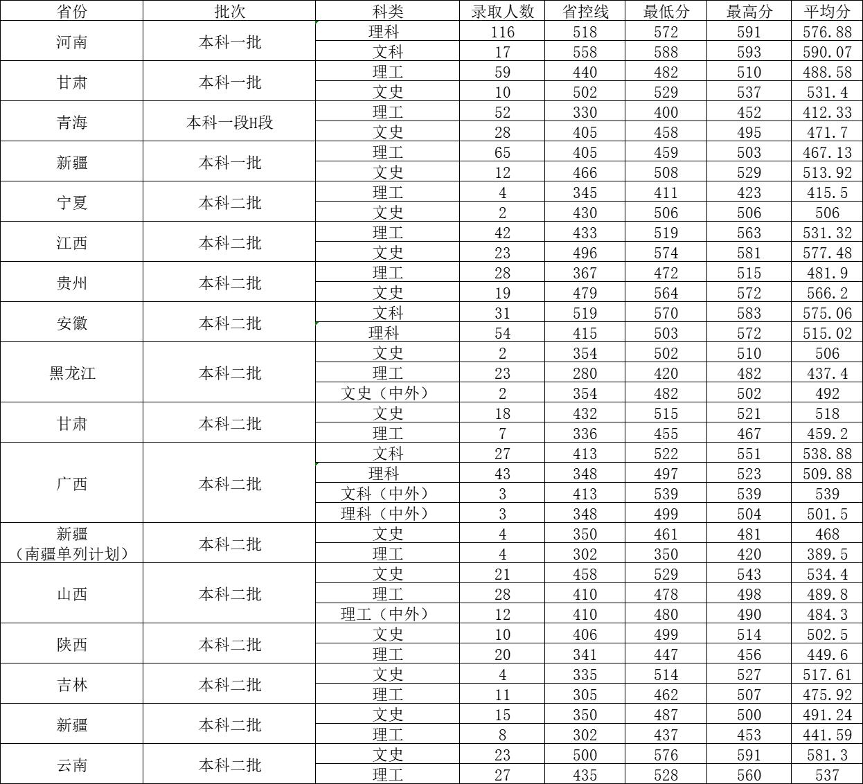 本科一批在四川文史类录取最高分571分,理工类录取最高分580分。本科二批文史类录取最高分582分,理工类录取最高分523分。