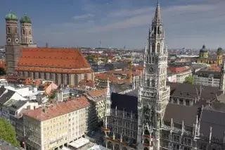 这座拥有 500 年历史的砖砌建筑是慕尼黑和弗赖辛大主教的所在地。游客可以登上大教堂两座 100 米高的塔楼之一,欣赏城市的壮丽景色。