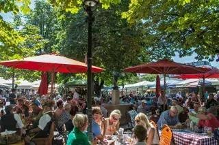 距离 Viktualienmarkt 中心的 Marienplatz S-Bahn 车站不远,您会发现啤酒花园,那里的人群可能是最多样化的。从旅游情侣到提着购物袋的企业家妻子,再到带着腊肠犬的穿着传统的男人——很可能所有人都在聊天。