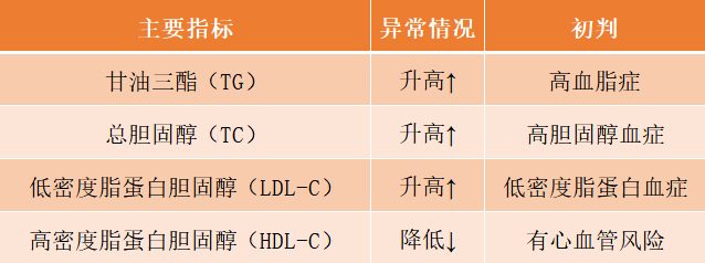 简而言之,HDL-C过低或者TG、TC、LDL-C升高,都属于血脂异常,均对血管健康不利(请看下面的表格)。