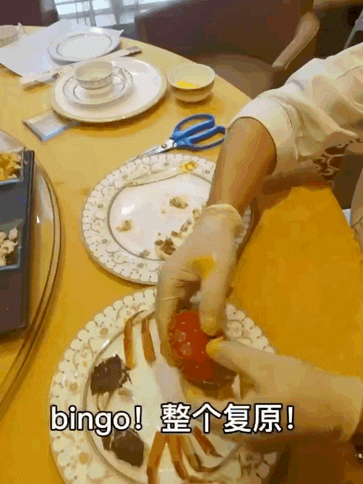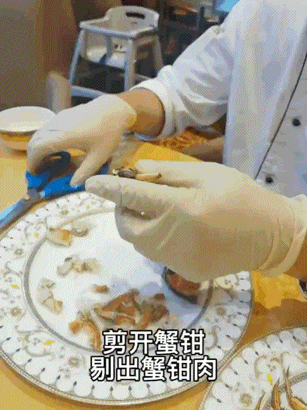 答:不一定要使用“蟹八件”,剪刀、顶端略扁的小勺配合凉蟹脚的尖处不寒,就能吃感干净。