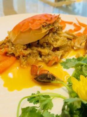 牡丹虾蟹也是近年来研发的新菜。用整只明虾做成牡丹,怎么吃大闸蟹蘸料,以蟹黄、蟹油点缀并调味。蟹粉的鲜美能与明虾的Q弹相辅相成,怎么吃大闸蟹有仪式感,怎么吃大闸蟹不过敏。