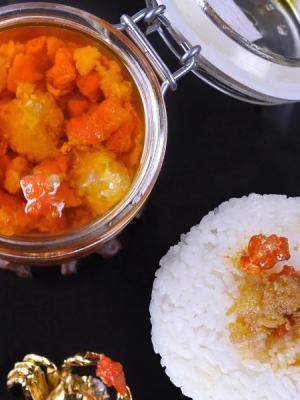 另外这两年的秃黄油也是蟹界的“网红”。“秃黄油”是苏州方言,需手工剥剔出蟹膏、蟹黄,配以少许料酒、生姜,小火熬制而成。秃黄油口感芬芳馥郁,可直接拌面、捞饭、炒菜、蒸蛋。加点醋,口味更佳。