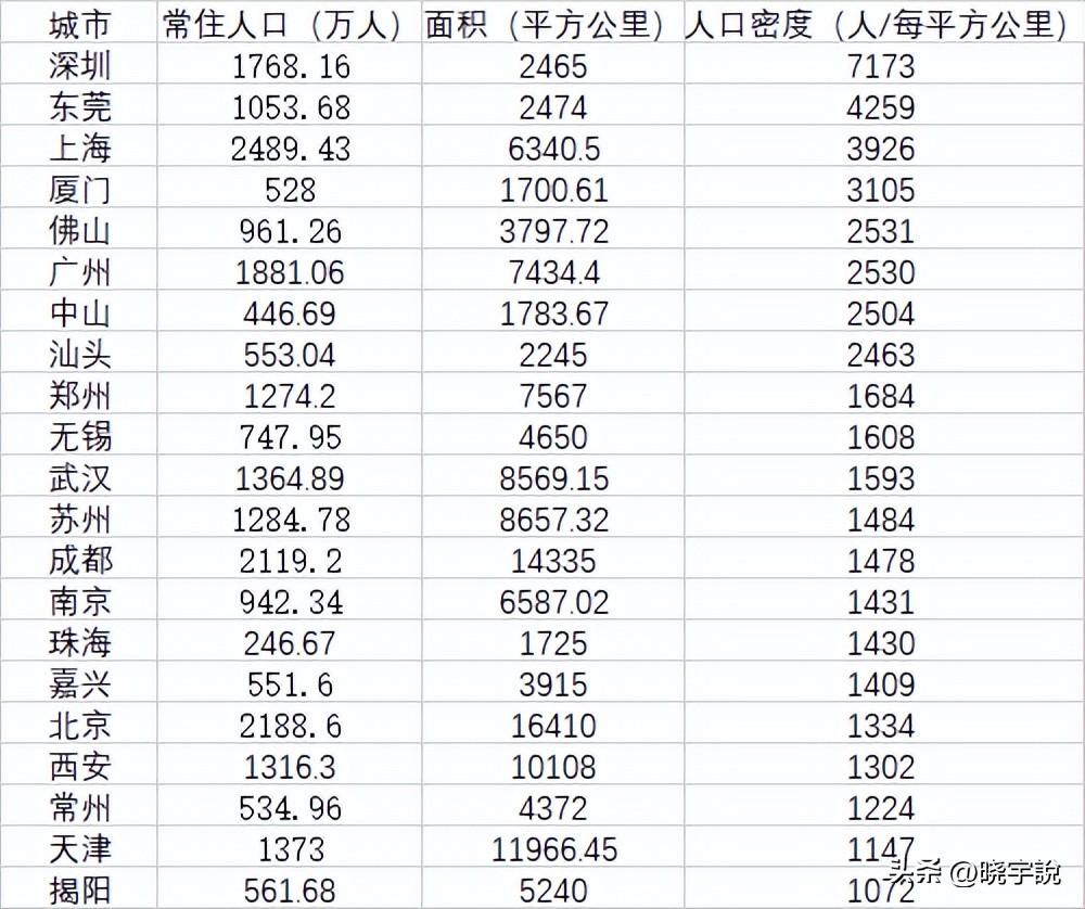 近日由第一财经发布中国城市人口密度排行榜单,榜单中有21座城市人口密度每平方公里超千人,其中深圳人口密度最高,人口密度超7000人,高达7173人每平方公里。
