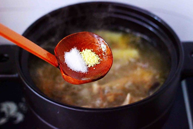 14.这个时候根据个人口味,加入适量的盐和鸡精调味。