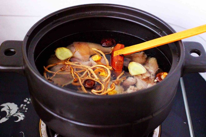 12.盖上砂锅盖子,小火炖煮1个小时后。
