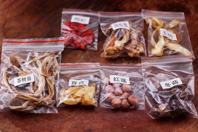 3.把所有的炖汤调料用清水浸泡15分钟左右。