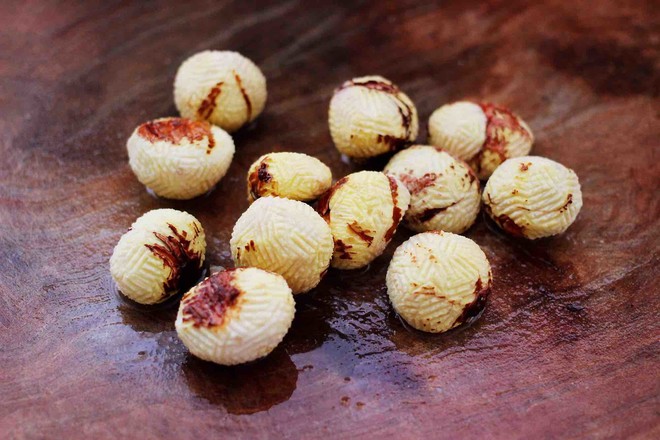 5.锅中倒入适量的清水,把板栗放到锅中,大火煮沸后煮2分钟左右关火,这个时候再把板栗捞出沥干水分后,再次去皮就特别容易了。