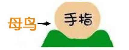 如果是母鸟,会摸到如图所示,就会感觉两个骨盆明显分开许多,手指是可以有压入的感觉,特别是成年母鸟,会有种摸到肚子软软的感觉,但又可以感觉到手指旁有两个骨头。