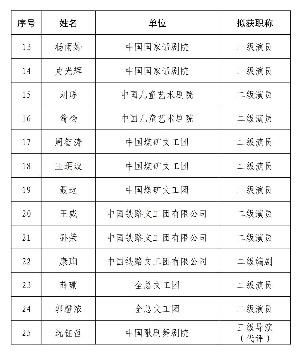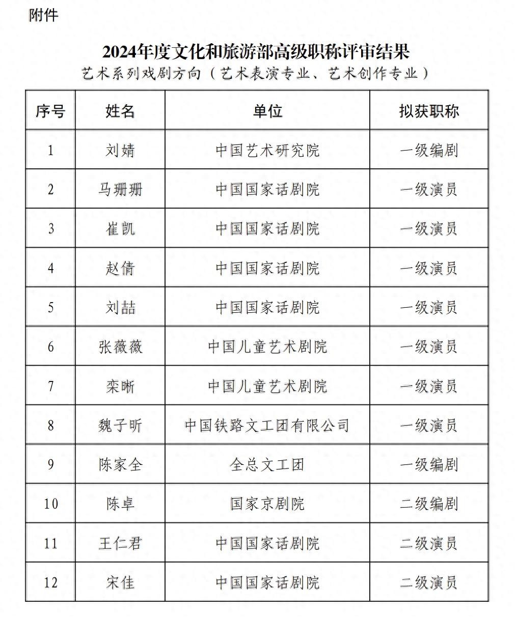 近日,文旅部网站发布《2024年度文化和旅游部职称评审结果公示》。其中,中国国家话剧院宋佳,中国煤矿文工团王玥波、聂远等人拟获评二级演员。