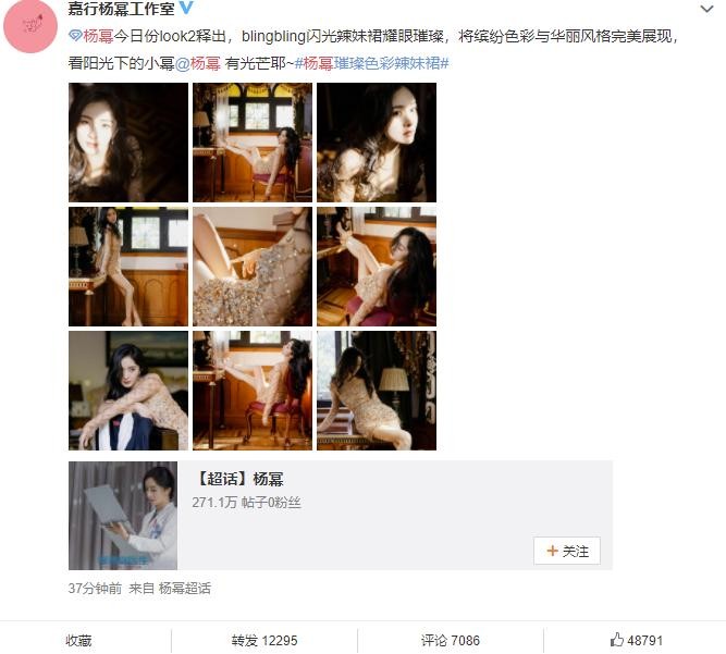 今日,杨幂工作室晒出第二份活动写真。照片中杨幂身穿一袭镶满钻石的闪光短裙,大秀长腿!