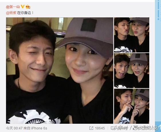 昨夜00:48分,杨紫在微博与张一山互撩,微博配图是和张一山的搞怪照片,并@张一山 问到:在哪儿?张一山回应道:在你身边!