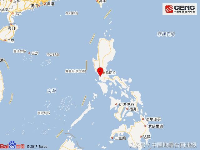 据中国地震台网自动测定,8月11日13时28分在南海海域附近发生6.5级左右地震,震中位于北纬14.38度,东经120.68度。