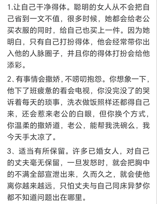 什么样的女人才是有智慧的女人 聪明的女人不一定有智慧,但有智慧的女人一定聪明!有智慧的女人会让一个家庭和睦温馨充满了凝聚力,因此有智慧的女人一定具备以下品质: 1.懂得...