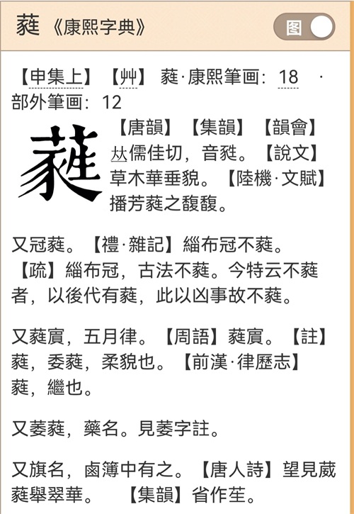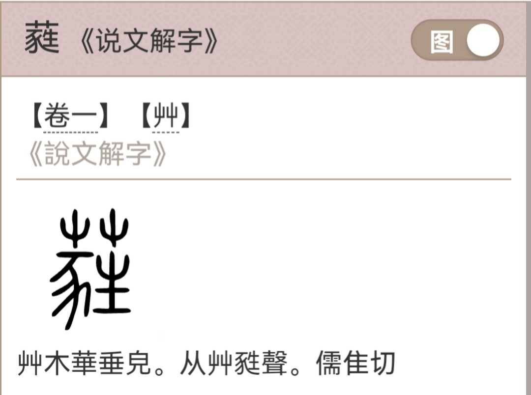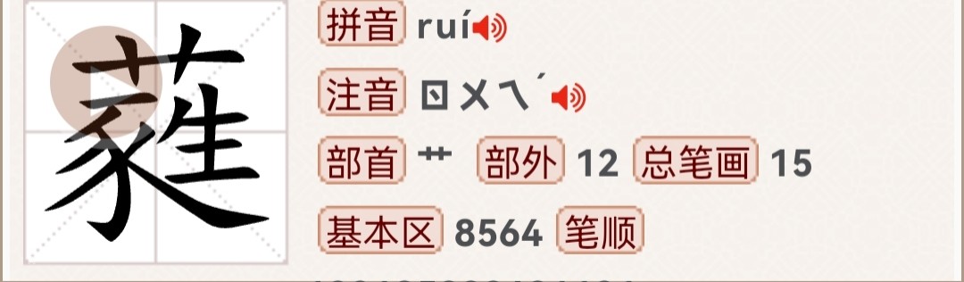 朋友们好,今天来学习一下汉字"蕤"怎么读,又是什么意思?一起来认识一下吧!
