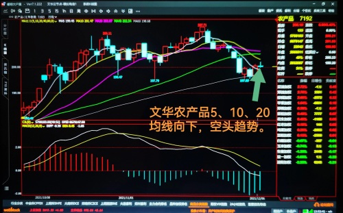 12月6日中午收盘,文华商品指数收报190.20,比上一交易日下跌-0.37%,同时盘中出现5、10、20、40、60日均线空头排列,期货大盘中长期跌势是否正式确认我们试目以待。
