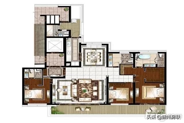 堪称完美的200㎡大平层,三房三厅三卫,超20米南向阳台亮瞎了!