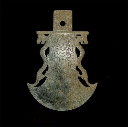 玉钺,是从新石器时代、夏商周时期独有的玉礼器,它是军事统治权、战争指挥权、王权集于一身的最高等级礼仪用器。玉钺在作为仪仗用途时,常作为持有者权力、威仪的表现之用,尊显统治者的崇高威严。