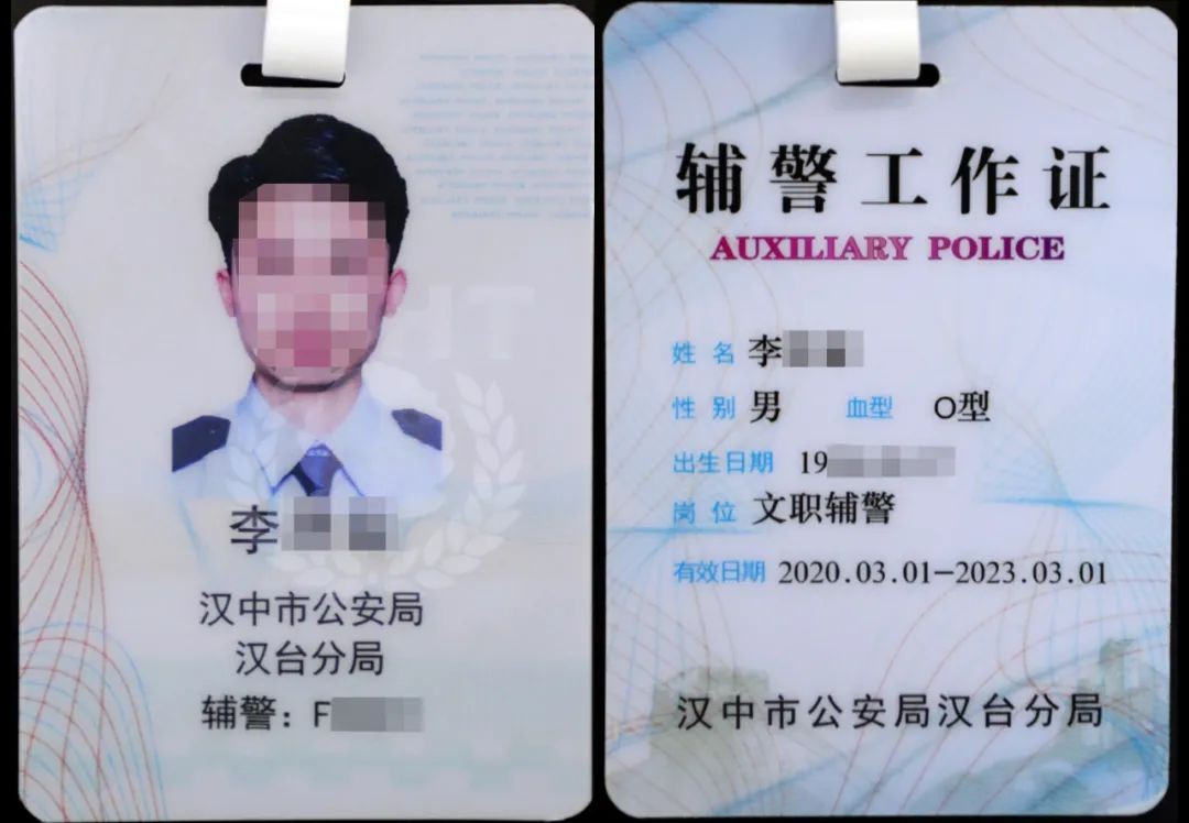 辅警工作证由挂带和卡片组成。内容进行了统一规范,卡片正面印制持证人照片、姓名、分局名号、辅警号以及防伪标识;背面印制持证人姓名、性别、出生日期、岗位、血型、证件有效期限。