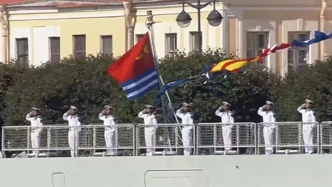 当地时间11时,20多艘来自俄各个舰队的水面及水下舰艇排列在圣彼得堡涅瓦河上,依次接受检阅。