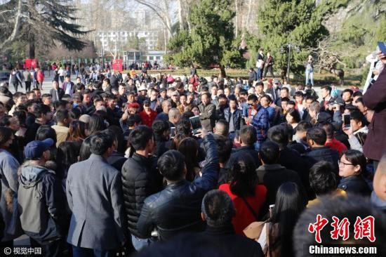 3月1日下午,在工作日公园本该冷清的时候,郑州人民公园内,却有年轻男女百余人围观大爷大妈们跳广场舞。