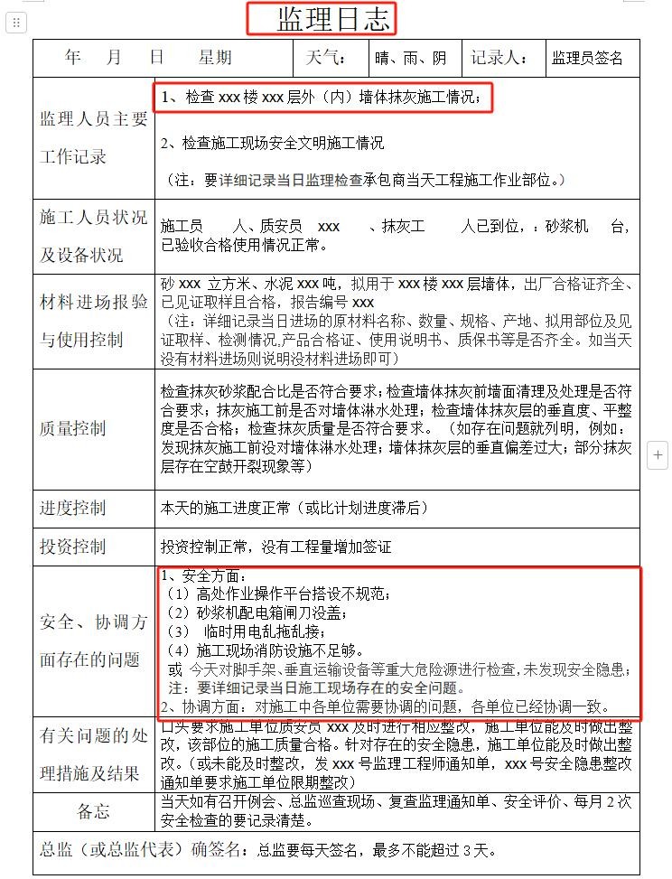 老监理写的监理日志从来不重样,原来他有这20套监理日志范本,包含建筑、市政、水利、公路,各类工程范本清晰展示,稍微修改就可使用!