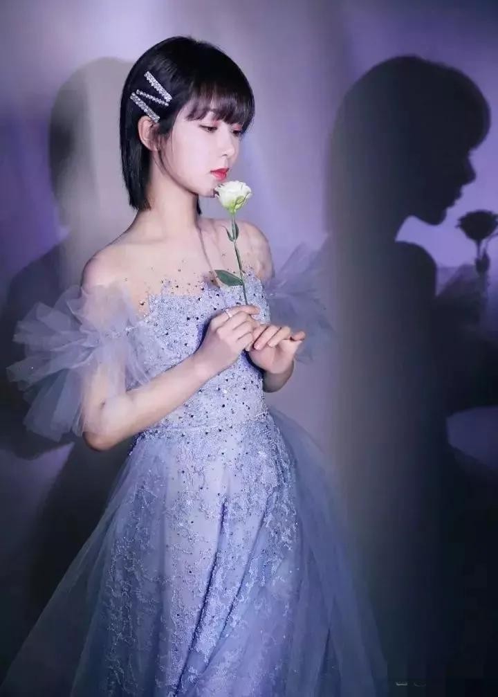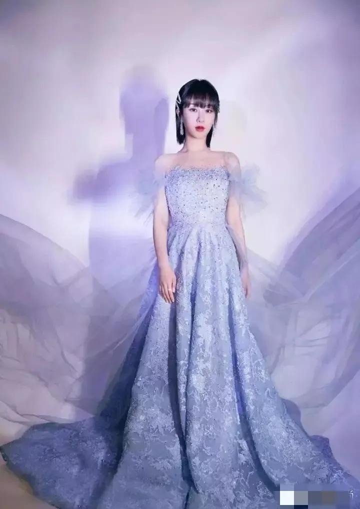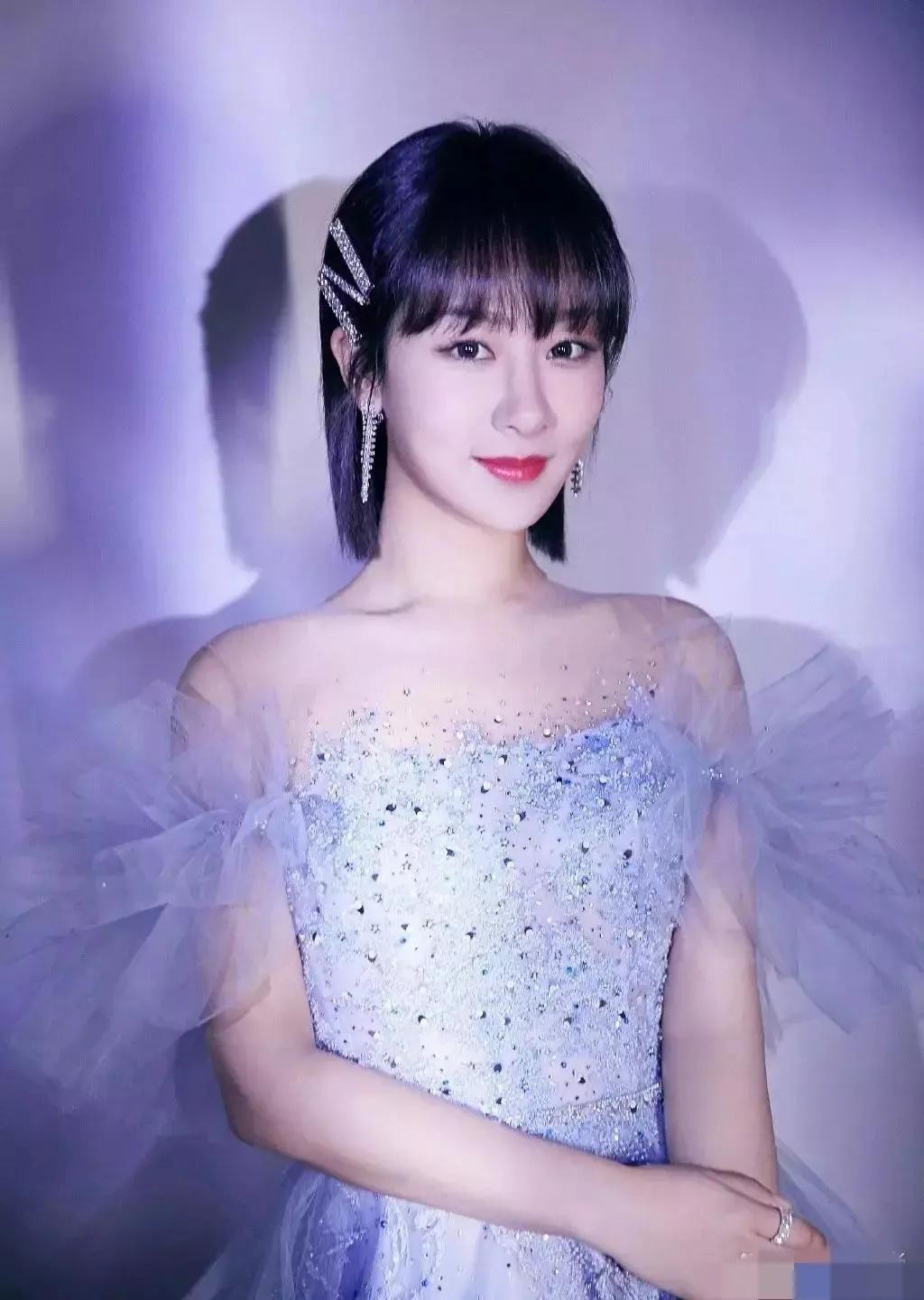 杨紫的穿搭惊艳了时光,瞧她身穿一袭雾蓝色亮钻刺绣长裙,优雅好看,再配上齐刘海短发,以及亮钻发卡点缀,精致华丽又不失少女感,真的是太高级了!