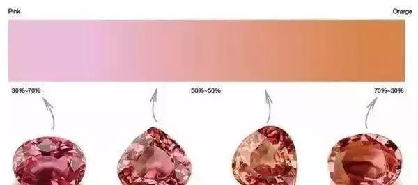 对于成熟的珠宝鉴定师来说,美是发现于观察者的眼里的。他们会根据橙色和粉色的色调、比例和饱和度来进行判定,通常产自斯里兰卡的帕帕拉恰会身价上升,而来自坦桑尼亚的帕帕拉恰会比其他产地的较为暗沉。