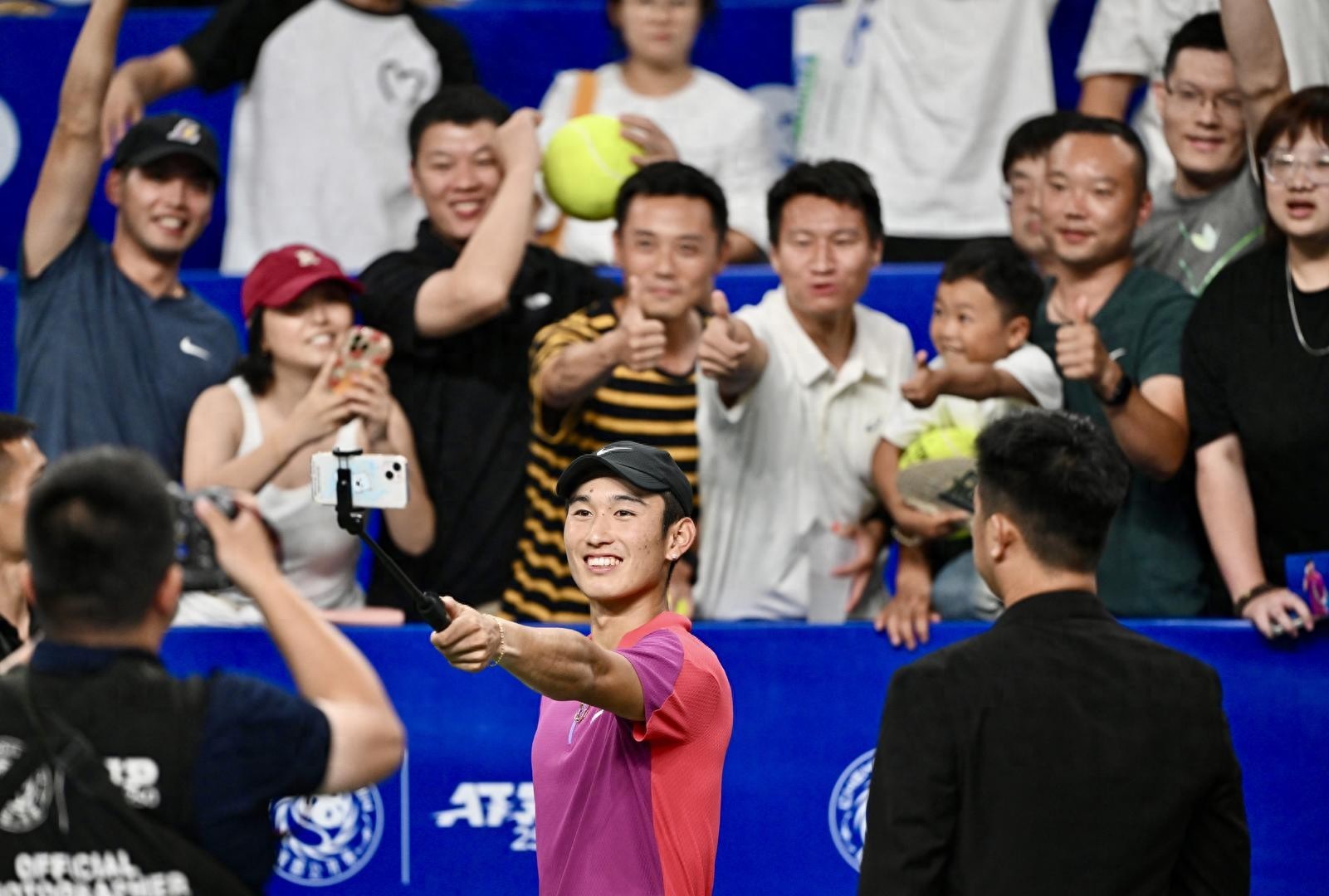 在2024年成都公开赛夺冠的商竣程与现场球迷互动 图据IC photo