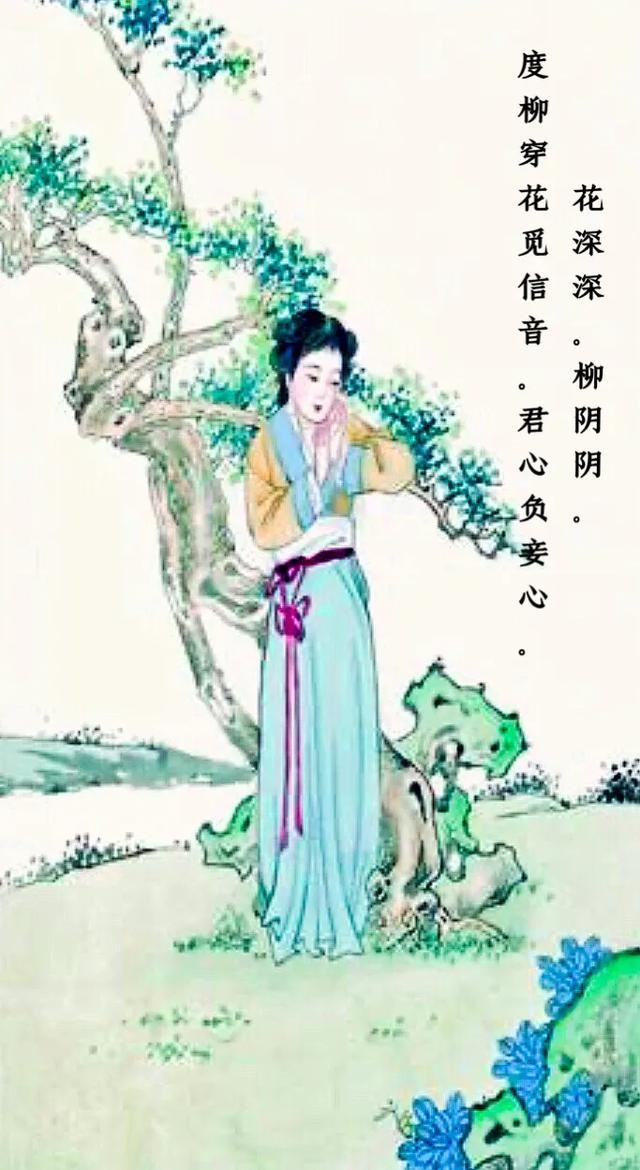 花深深。柳阴阴。度柳穿花觅信音。君心负妾心。