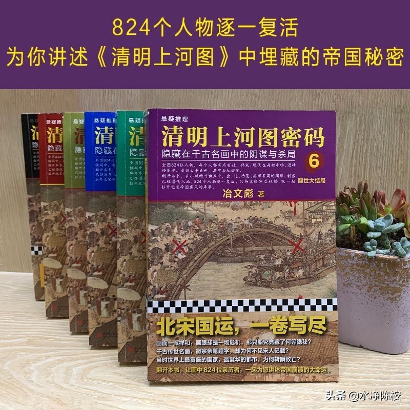 从《清明1》到《清明6》,宛若清明上河图的各个场景,在同一时间,所有这些人物轮番登场。人虽然多,但繁而不乱。《清明上河图》是传世名作,《清明上河图密码》亦是皇皇巨著。冶文彪心有丘壑,筹划深远,从梅船案发的悬念开局,汴京五绝粉墨登场,然而他们却要到最后一部才能相会。