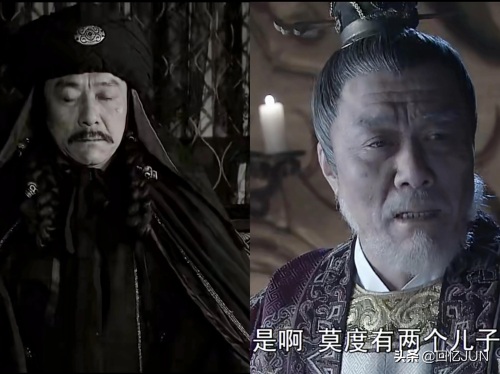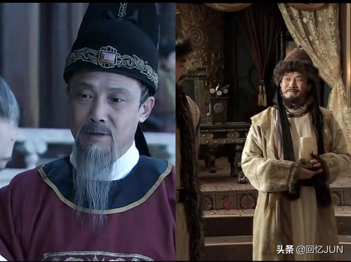 《神断狄仁杰》里,还有两位演员也是一人分饰两角,如图上这位演员,一边他在大周朝堂上是宰相“张柬之”,一边他在突勒还是拔汗那的叔叔。
