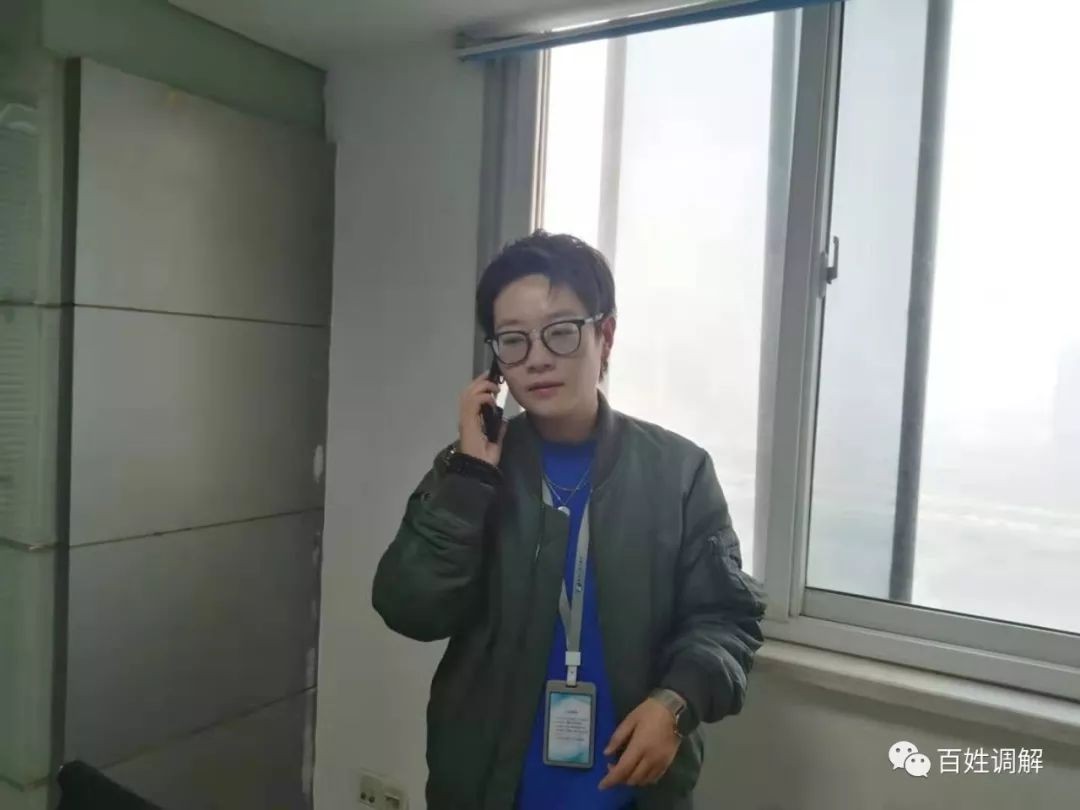 调解员何玲正在向交警同事了解情况
