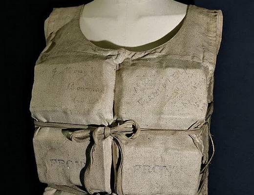 这是当时船上的一件救身衣,这件救生衣属于幸存者Laura Mabel Francatelli,获救后,与Laura同船的所有幸存者都在上面签下了自己的名字,目前世界上仅存有6件泰坦尼克沉船救身衣,影片《泰坦尼克号》中曾有这样一段令人泪目的情境,一位老绅士在船沉没之际,服务员要他穿上救生衣,他却回答:让我们盛装以待吧…